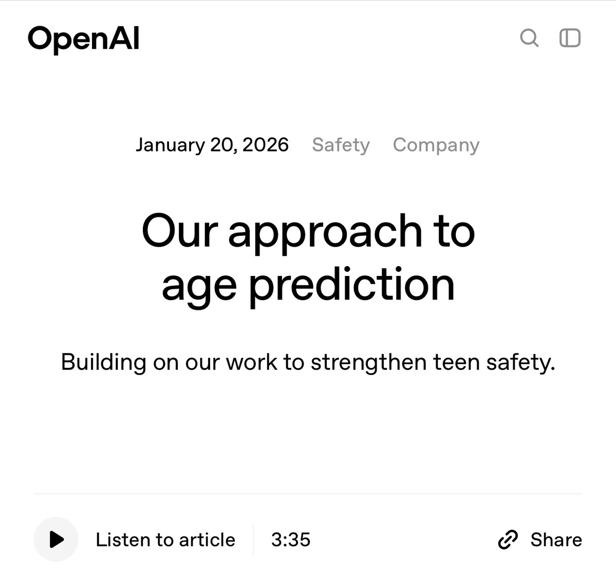 11月,公司发布《青少年安全蓝图》,阐述了在适龄设计、产品安全机制及持续评估等方面,ai应如何更好地服务于青少年群体。